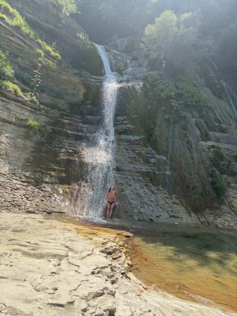 Kein Mensch weit und breit, ein Wasserfall 5 Fußminuten vom Haus entfernt, und ein Garten, in dem wir nackt in der Sonne liegen konnte.